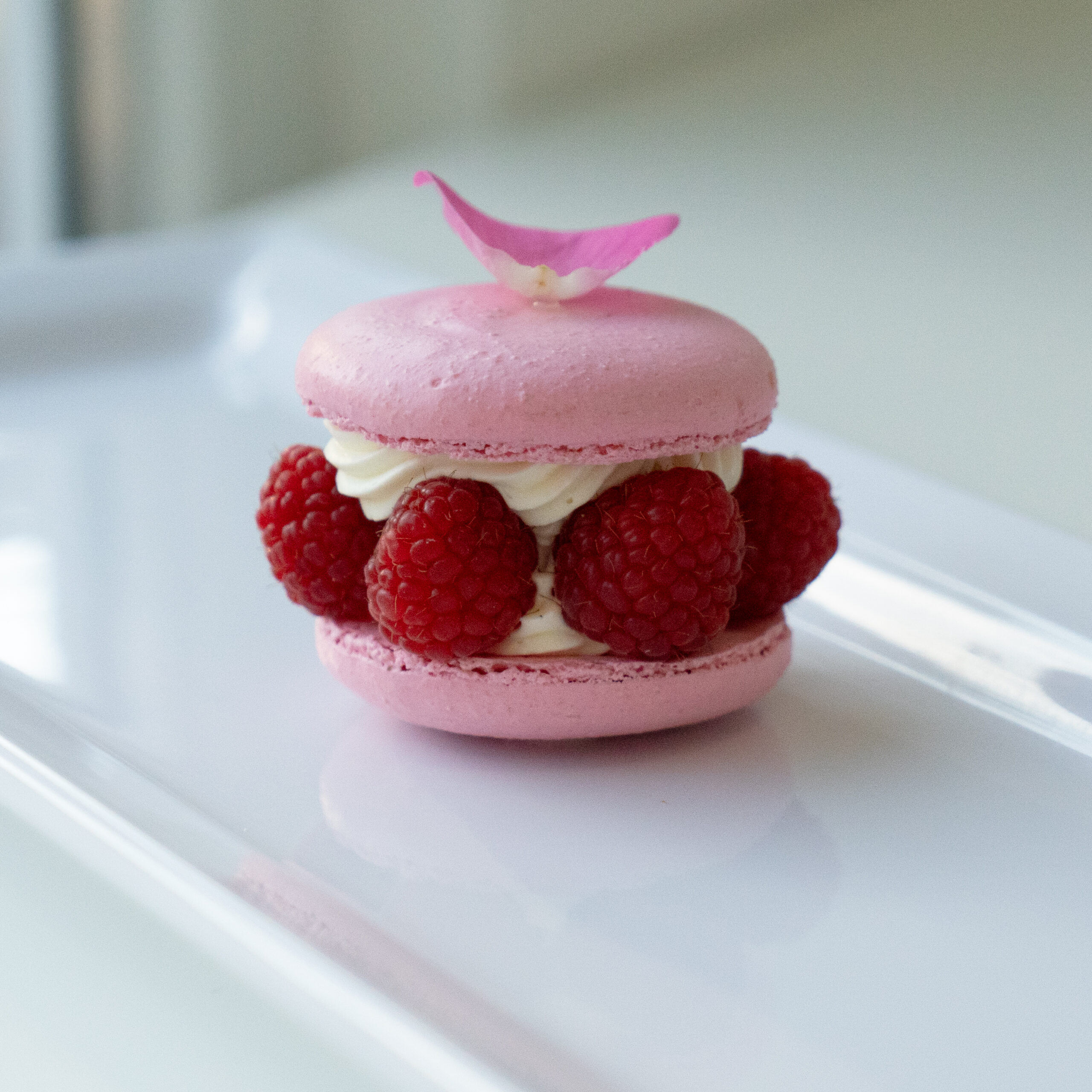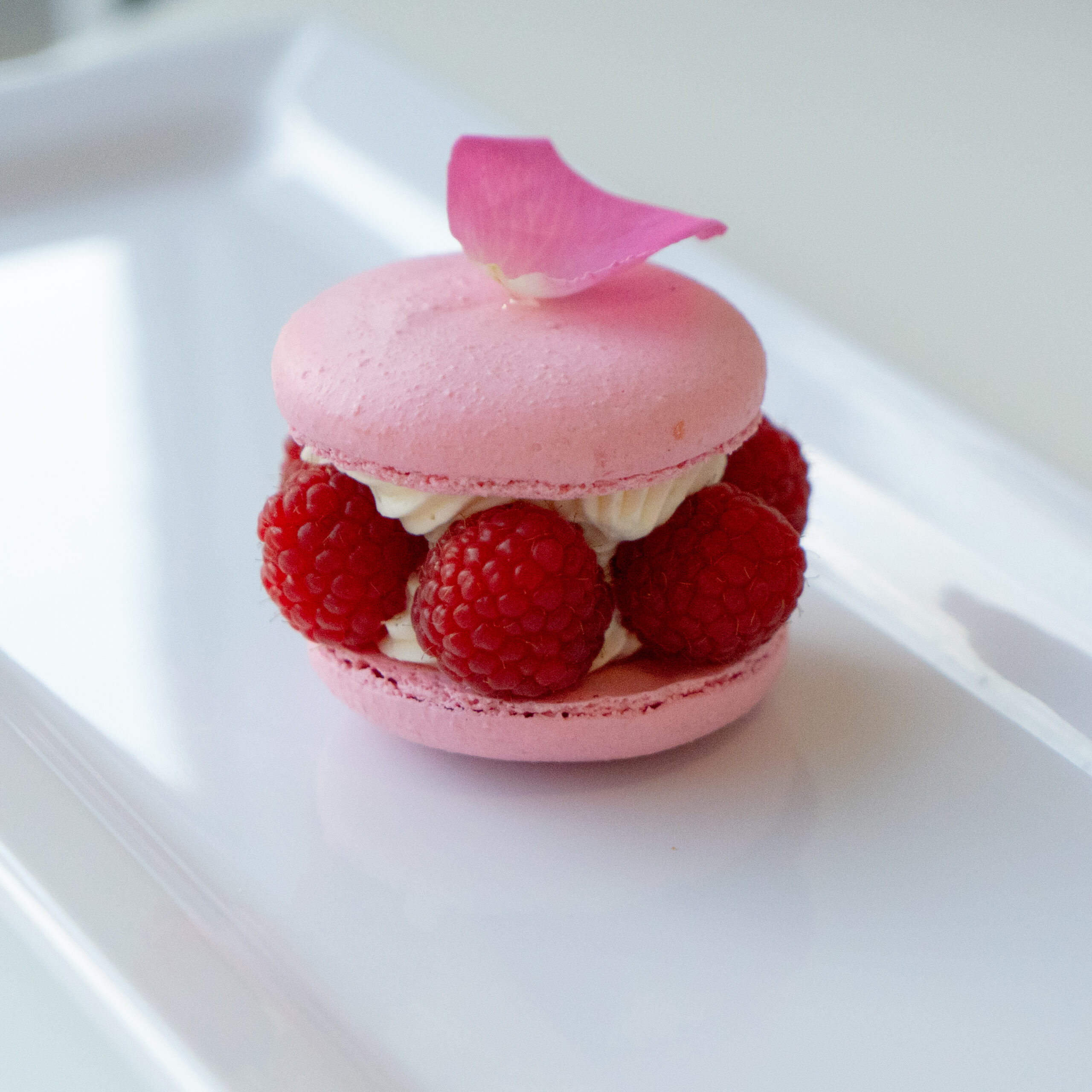 Der Klassiker nach Pierre Hermé: Rose, Litschi und Himbeere vereint in einem Macaron.